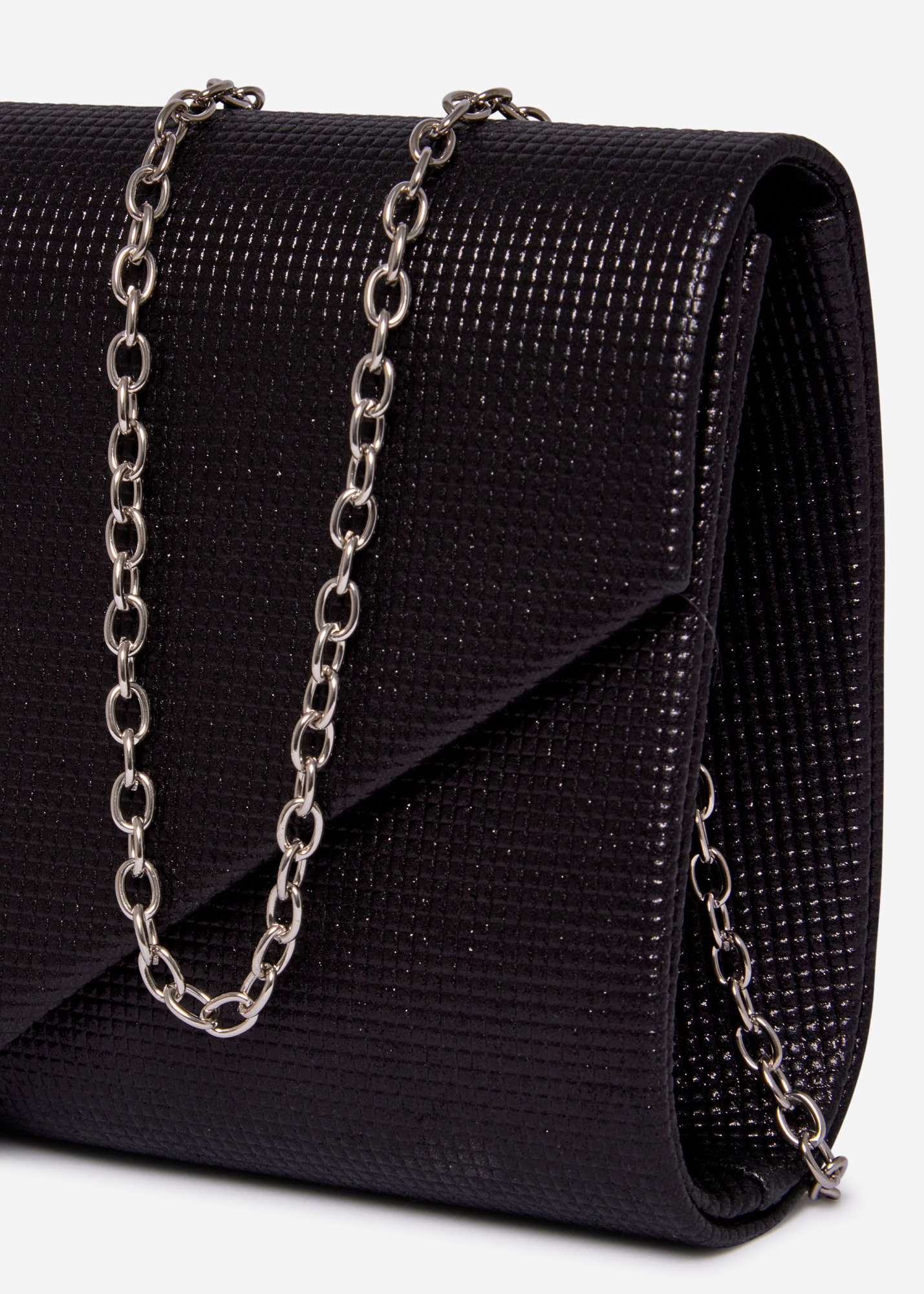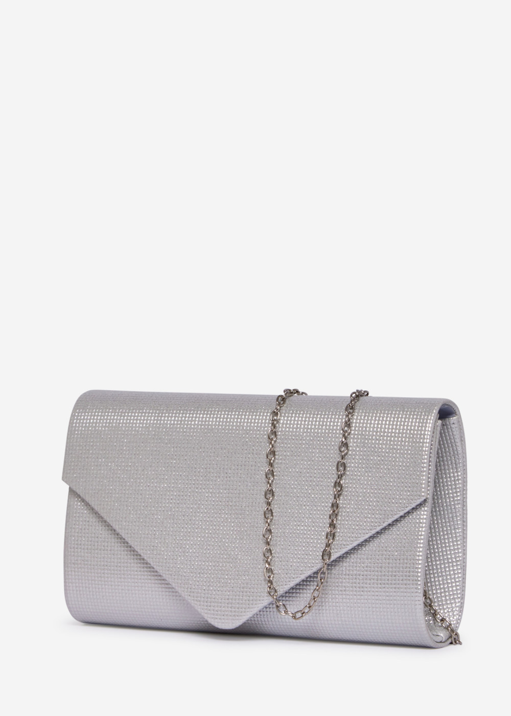 Silver Glitter Envelope Evening Clutch Bag with Chain