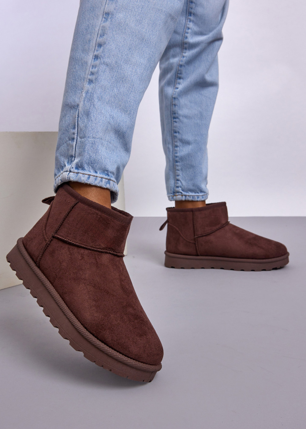 Chocolate Faux Suede Ankle Winter Boots