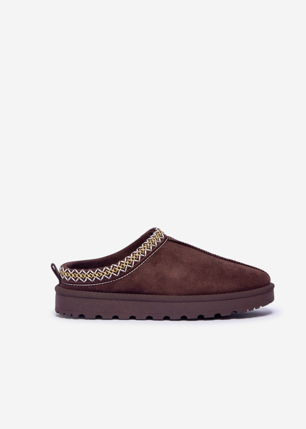 The beautifully woven contrast trim adds a stylish, artisanal touch, elevating the classic mule silhouette. A lightweight yet durable outsole provides excellent grip, making these shoes suitable for both indoor lounging and short outdoor walks. Functional, warm, and stylish—these winter mules are an essential addition to your cold-weather wardrobe.
