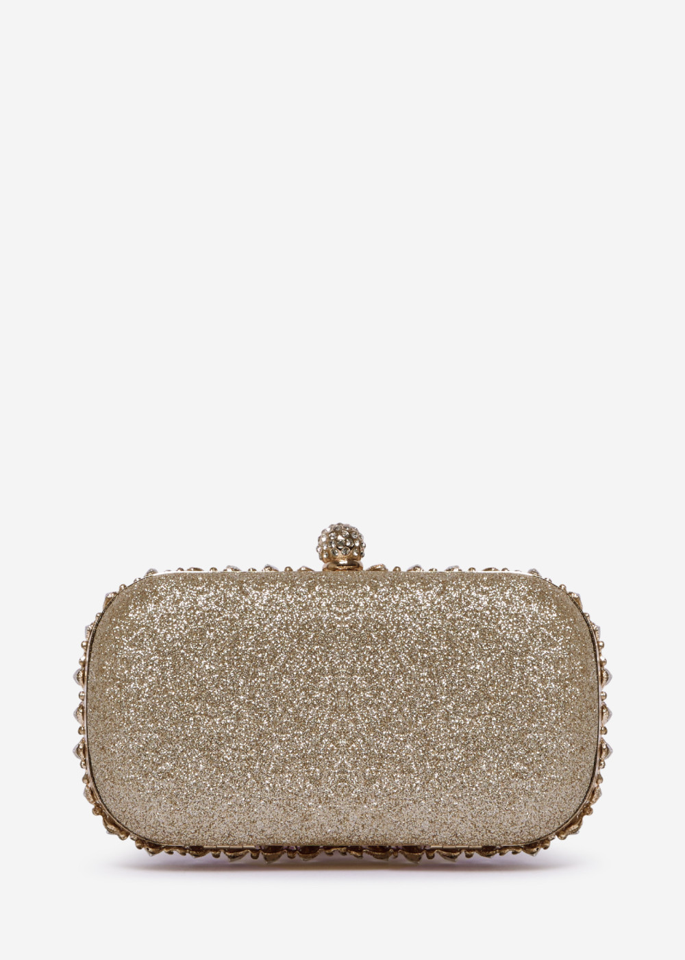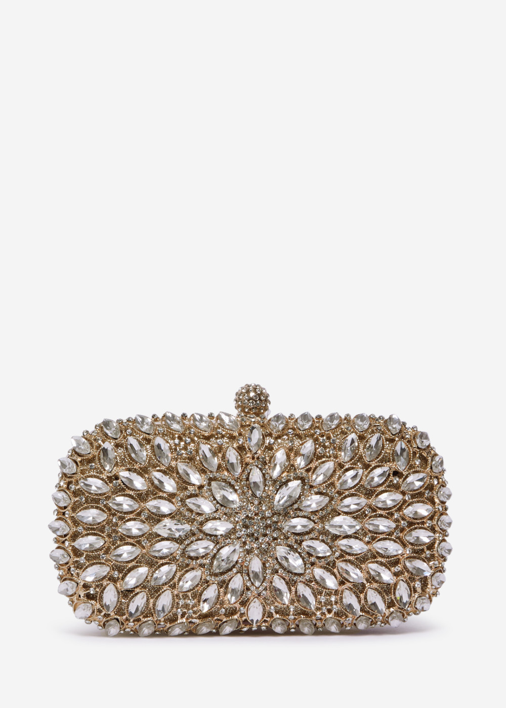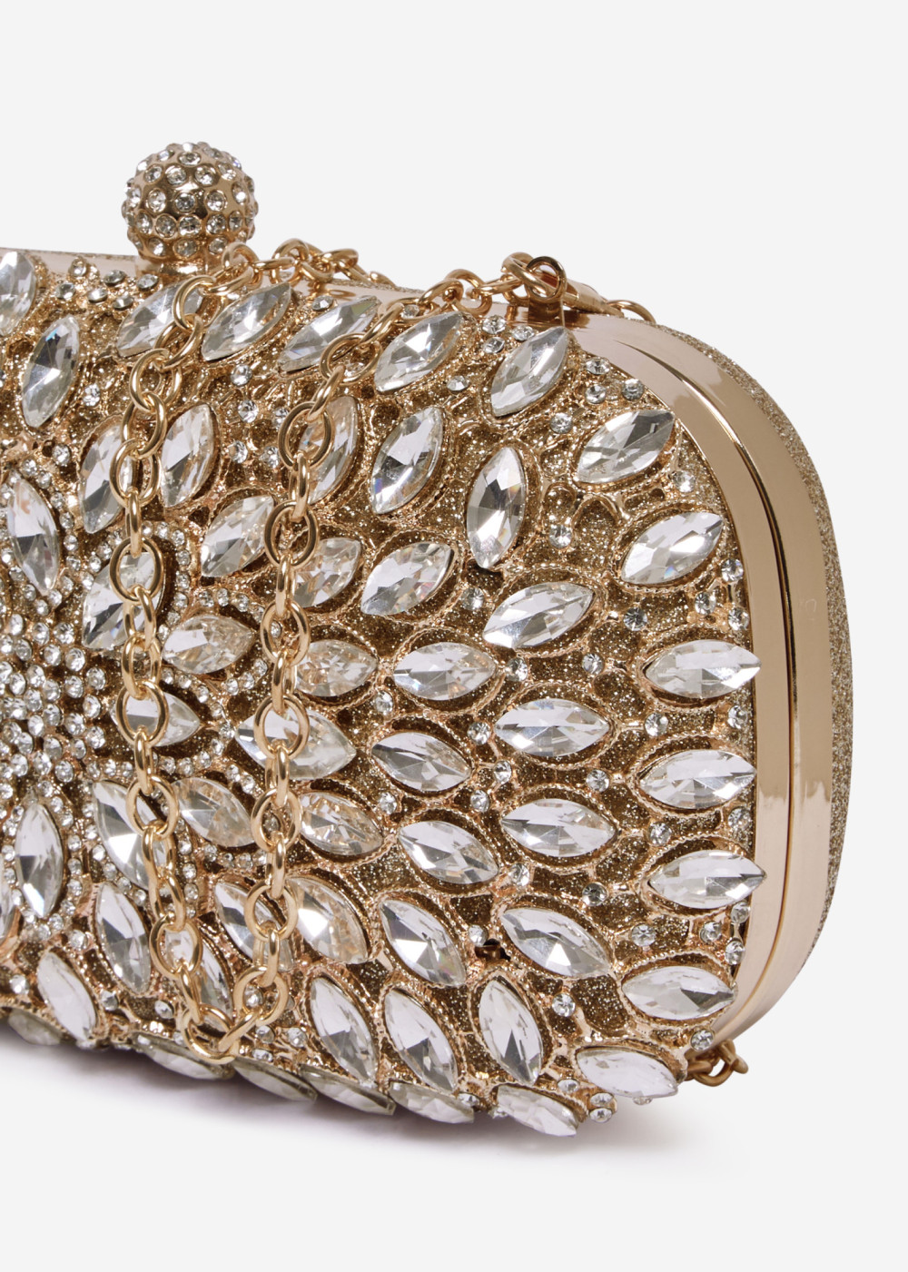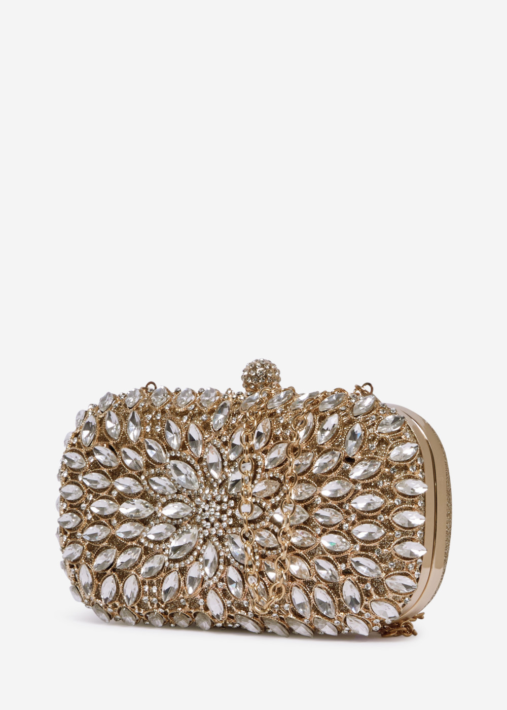 Gold Crystal Embellished Hard Case Evening Clutch Bag