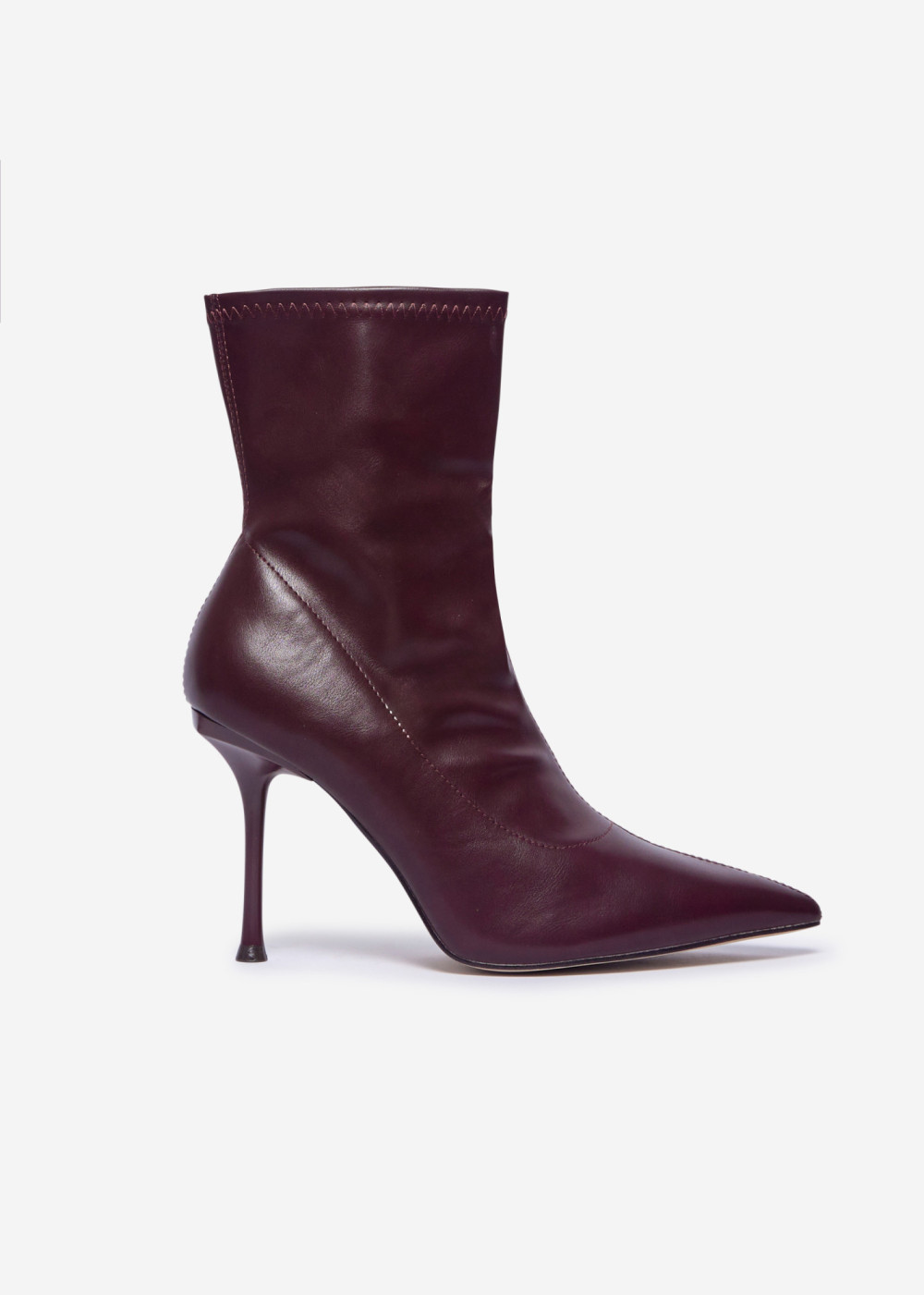 Burgundy Pointed Toe Stretch Faux Leather Stiletto Ankle Boots