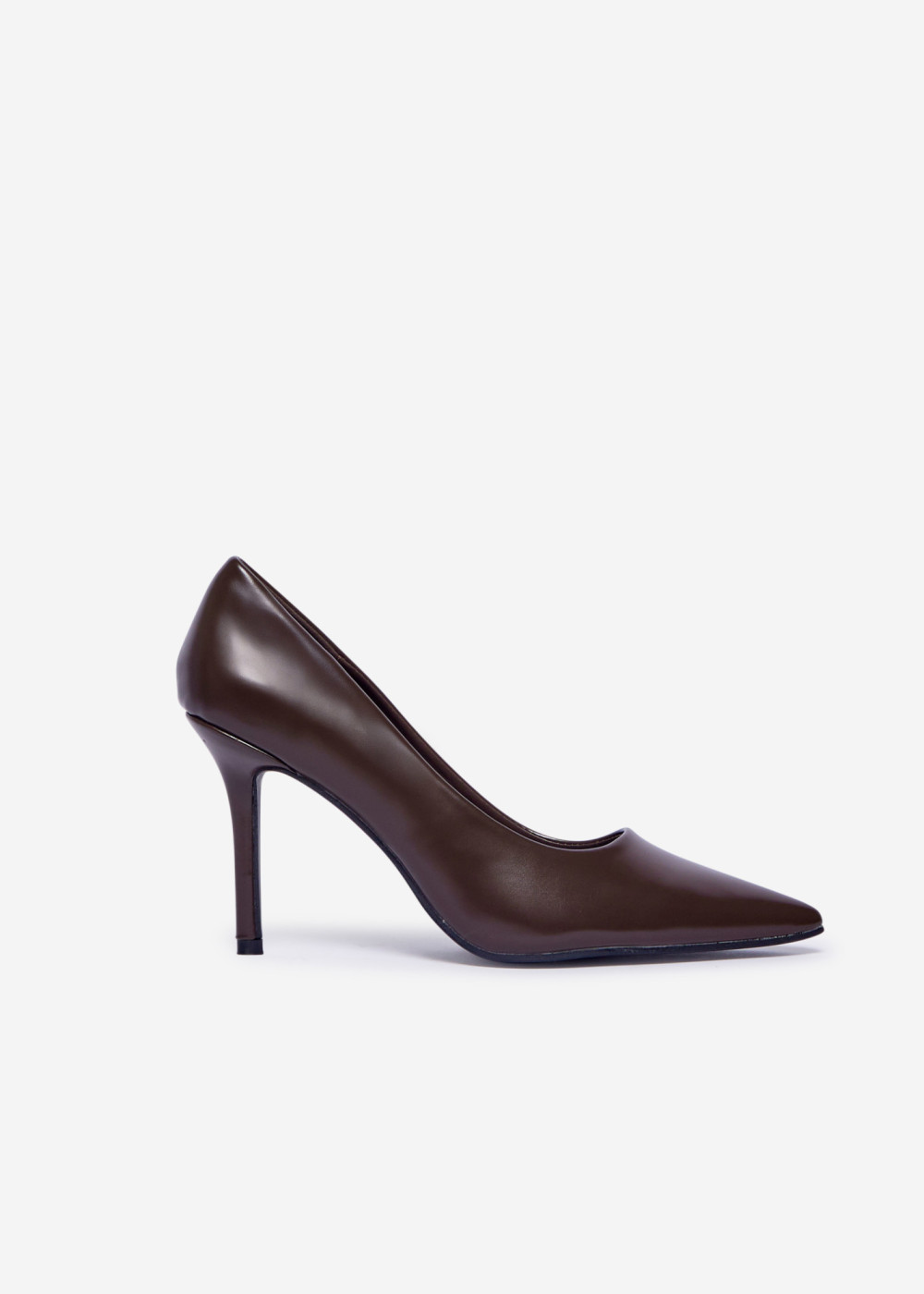 Discover sophisticated simplicity with these Brown Pointed Toe Stiletto Heels. Designed with a sleek pointed toe and a slim high stiletto heel, this classic pair offers a timeless silhouette suitable for both everyday wear and special occasions. The rich brown finish adds warmth and versatility, pairing effortlessly with neutral tones, autumn styles, office outfits, and evening looks.