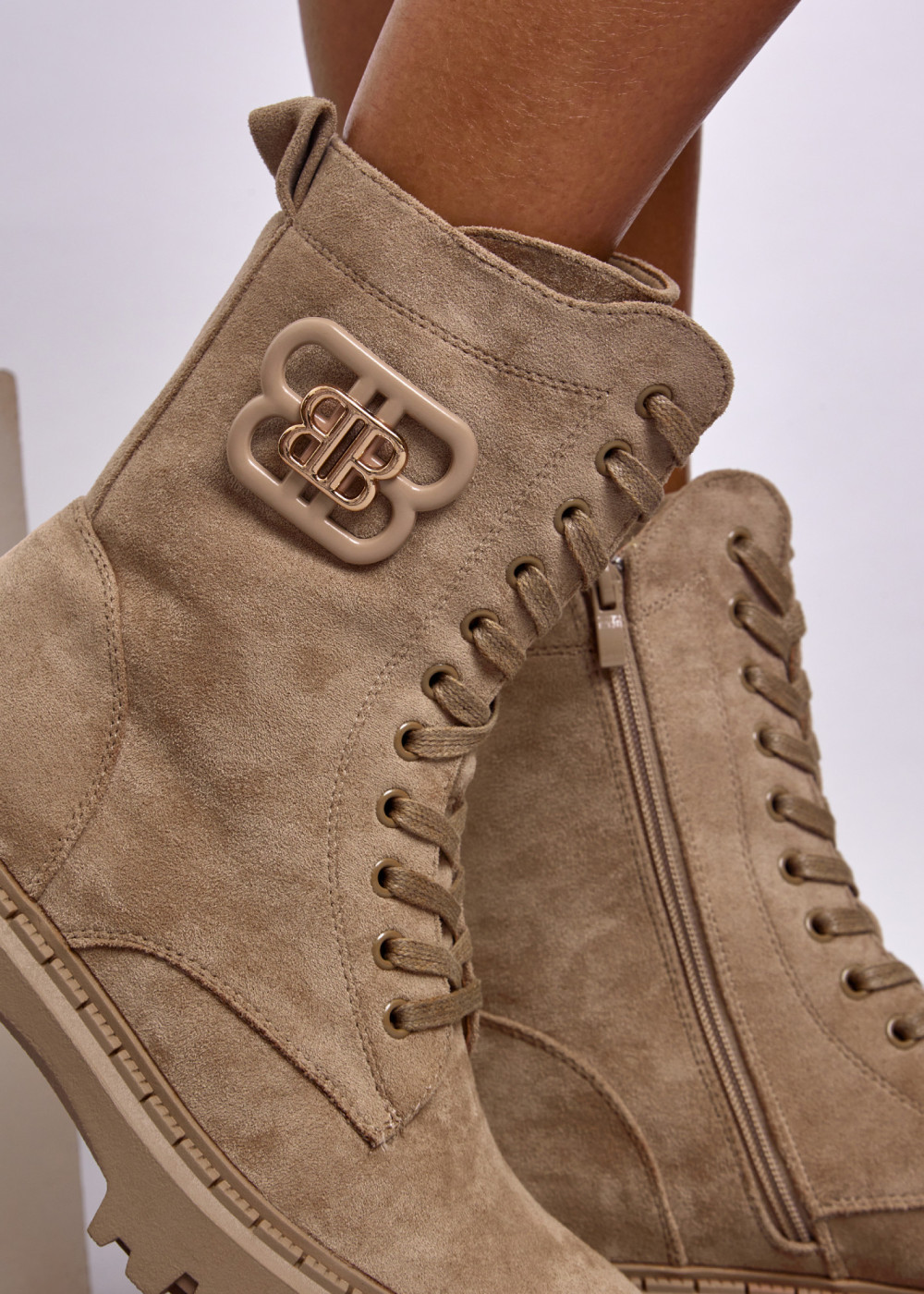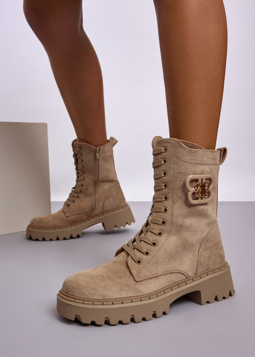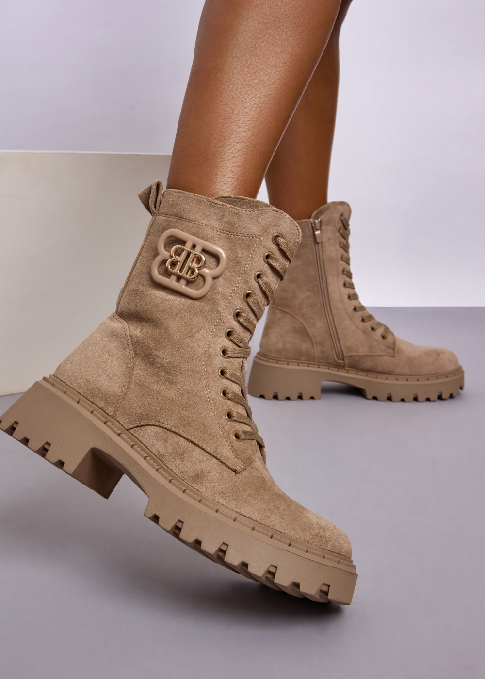 Upgrade your everyday footwear with these Beige Lace-Up Chunky Faux Suede Boots, designed for both comfort and standout style. Crafted from soft faux suede, they offer a premium look and a warm, flexible feel—perfect for colder days. The lace-up front ensures a secure and adjustable fit, while the full side zip provides quick and effortless wear. A bold chunky sole adds extra height, stability, and grip, ideal for urban walks or casual weekend outfits.