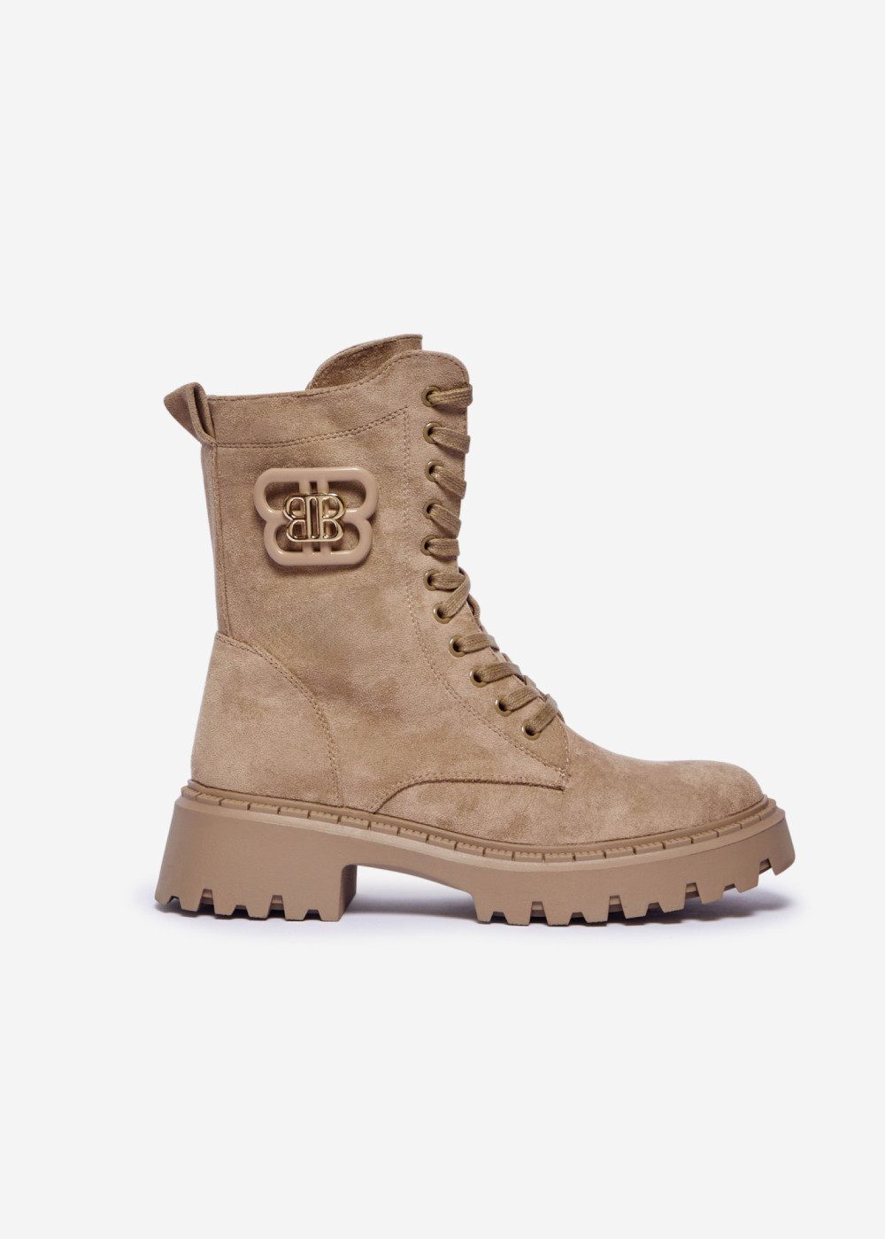 Beige Lace-Up Chunky Faux Suede Boots