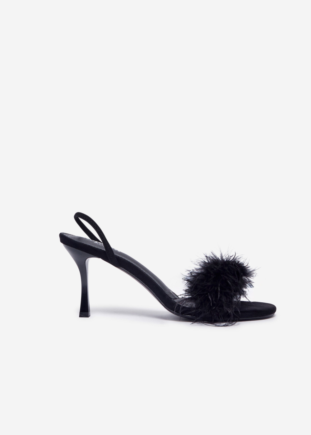 Black Faux Suede Feather Slingback Heels