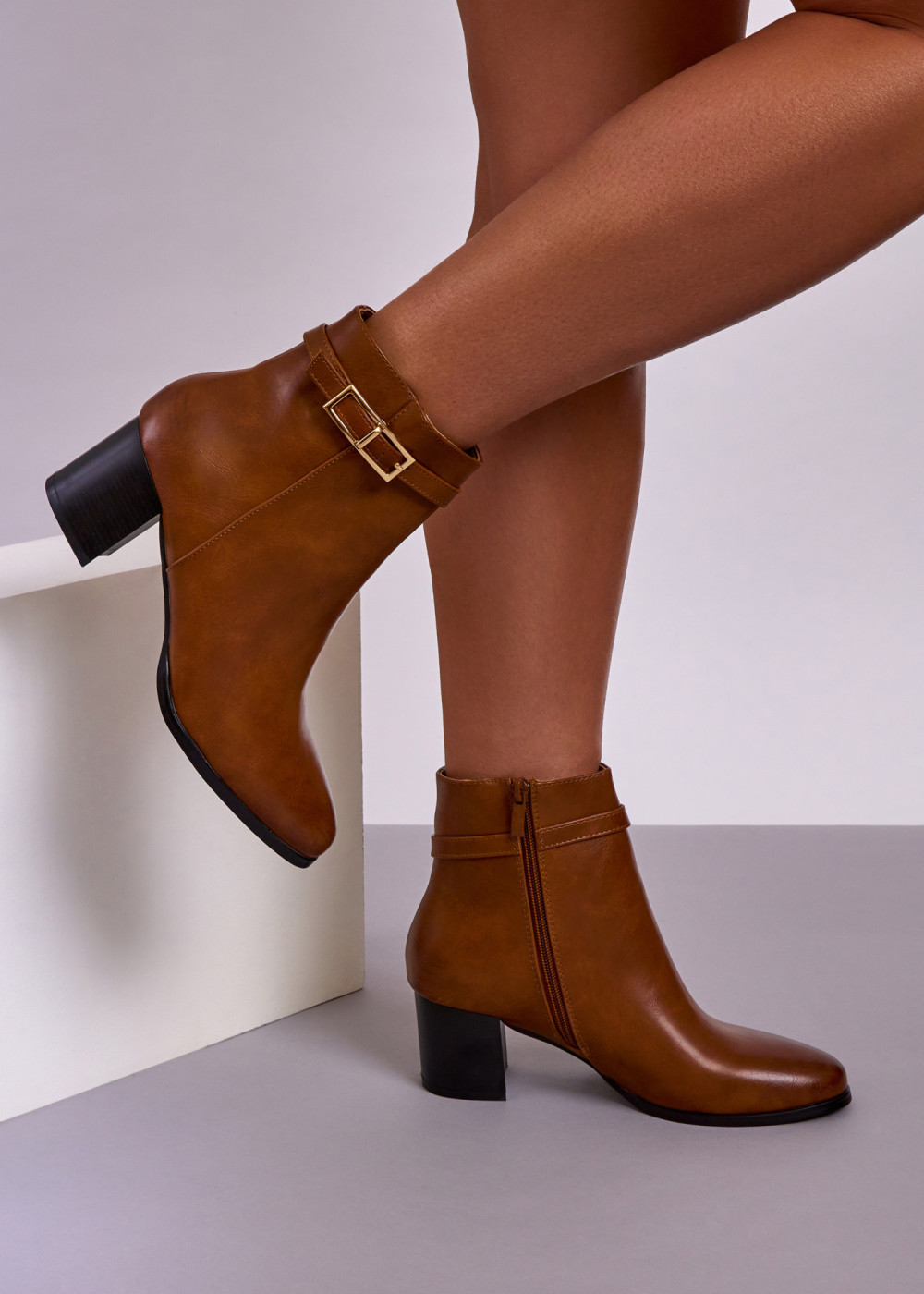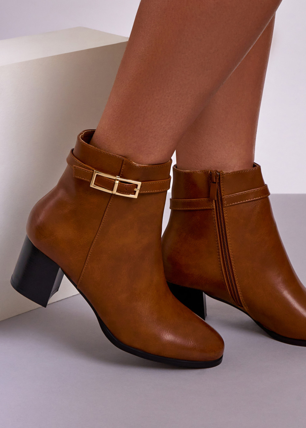 Step into the new season with these stylish tan ankle boots, designed to combine everyday comfort with a clean, modern look. Crafted in a smooth leather-look finish, they feature a supportive block heel that provides stability and ease of wear throughout the day. The ankle strap with a subtle buckle detail adds a refined touch, while the side zip fastening ensures quick and effortless wear. Finished in a warm tan shade, these boots are a versatile autumn and winter essential, pairing perfectly with jeans, tailored trousers, or seasonal dresses.