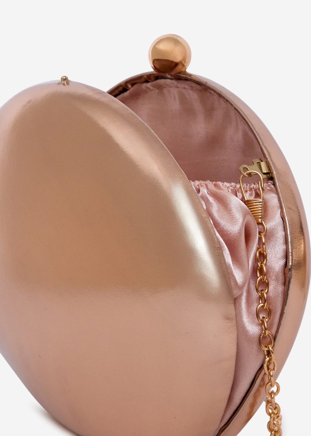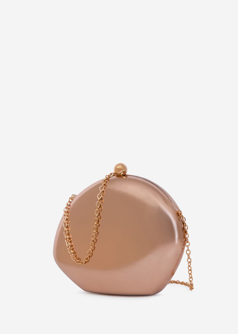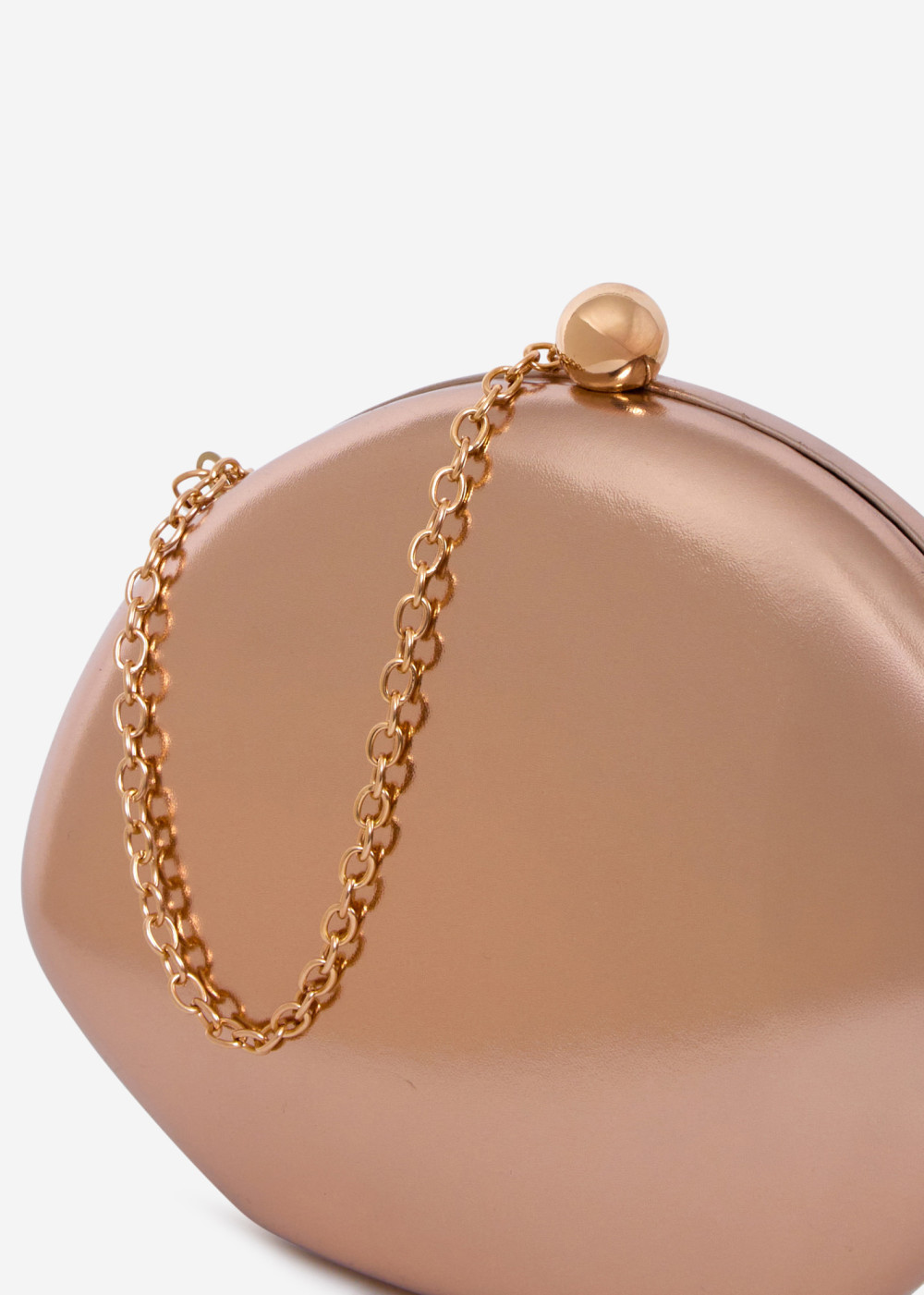 This elegant champagne clutch bag features a smooth metallic finish and a timeless rounded silhouette. Designed for special occasions, it comes with a detachable gold-tone chain, allowing it to be worn as a shoulder bag or carried as a clutch. Perfect for weddings, parties, evening events, and formal occasions, this compact bag adds a refined touch to any outfit while holding your essentials with ease.