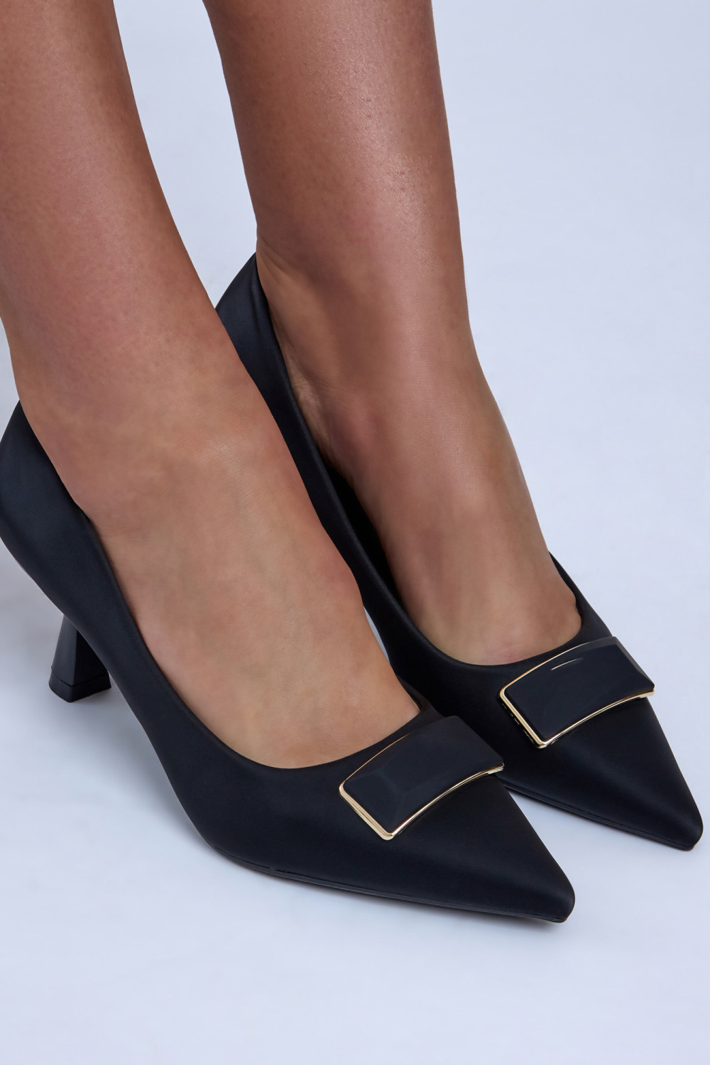 Black Pointed Toe Court Shoes with Decorative Buckle