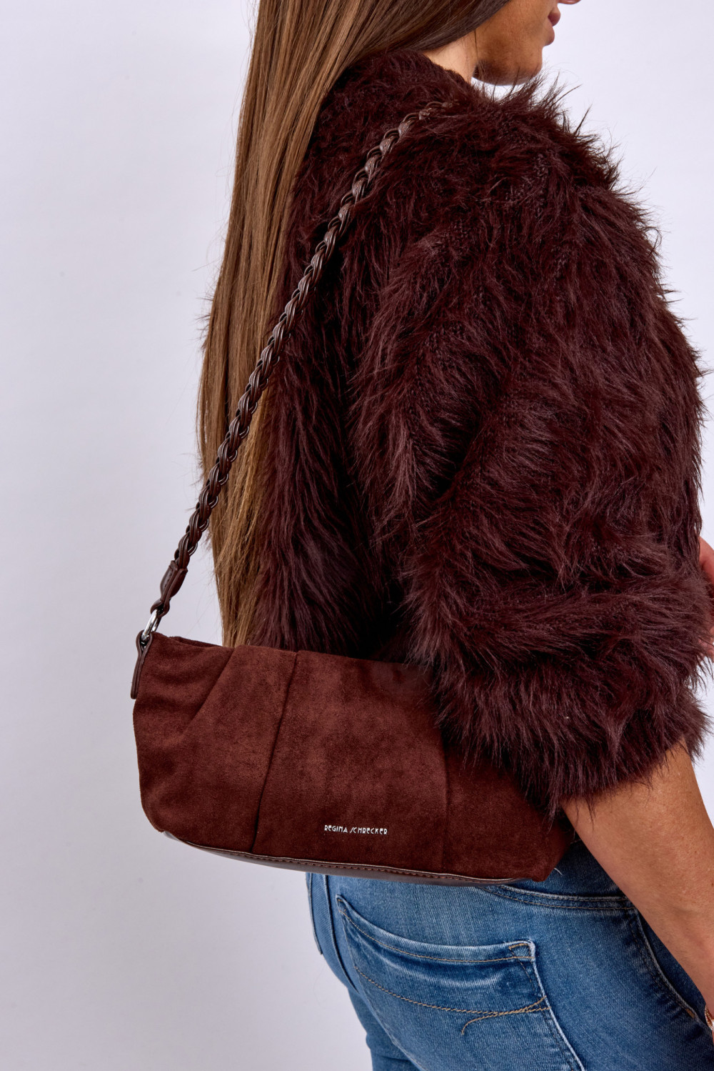 Dark Brown Suede Effect Shoulder Bag with Braided Handle