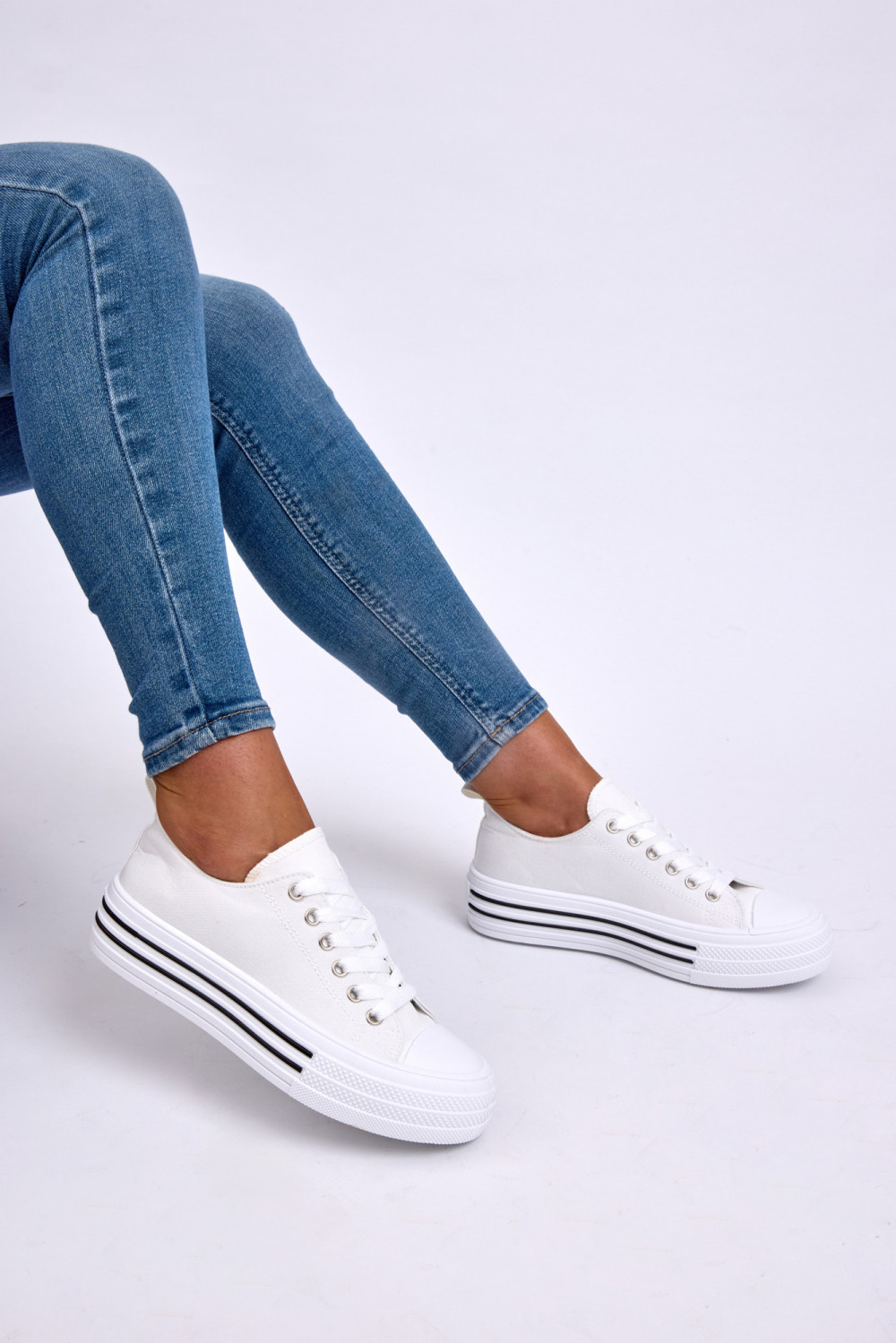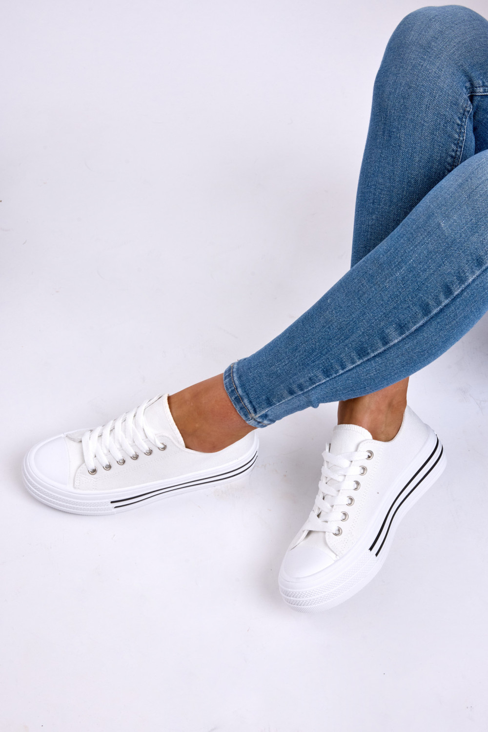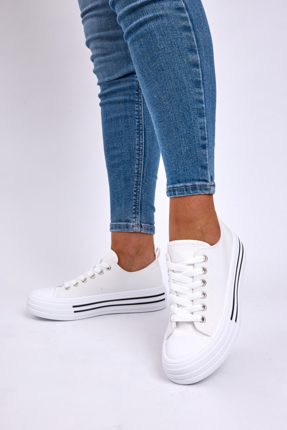 Women’s White Canvas Platform Trainers