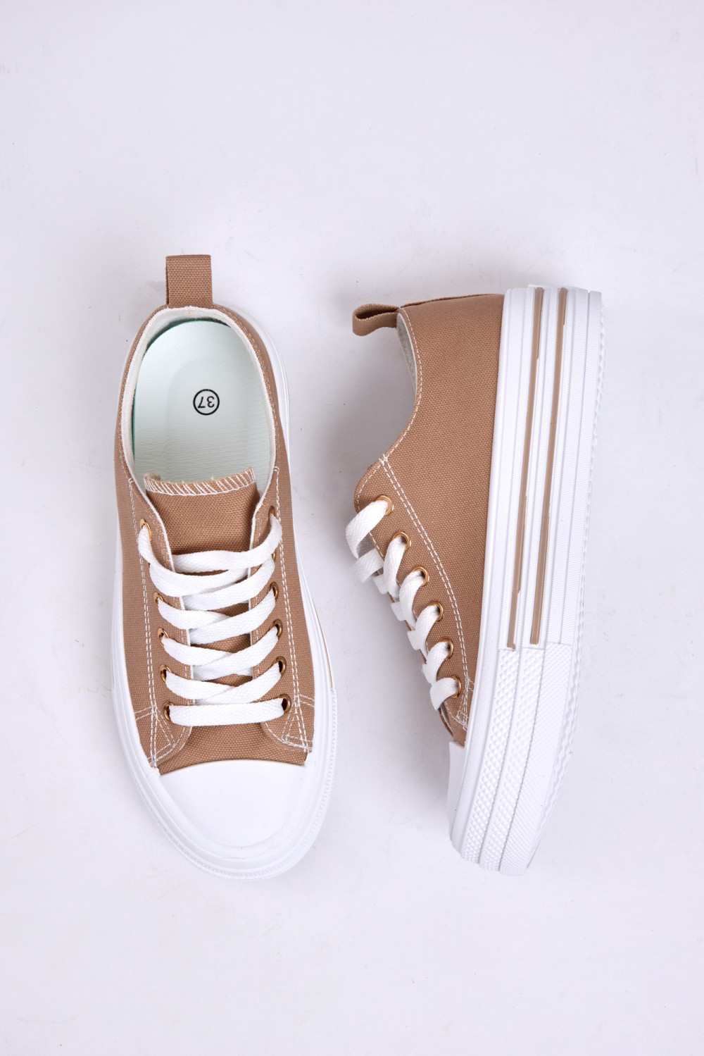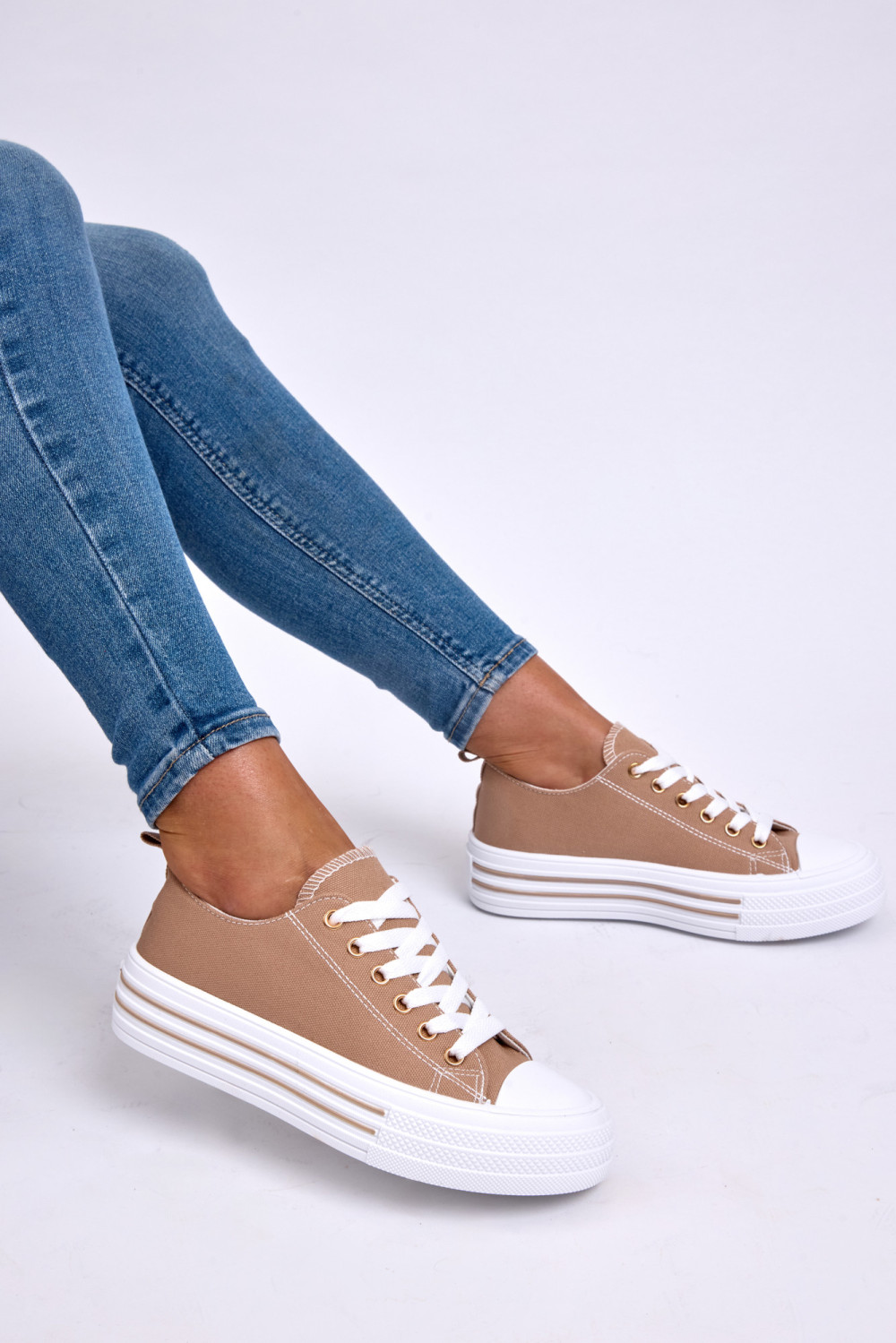 These khaki canvas platform trainers offer a stylish earthy tone combined with everyday comfort and versatility. Made from breathable textile material and finished with classic lace-up fastening, they provide a secure and flexible fit for daily wear.