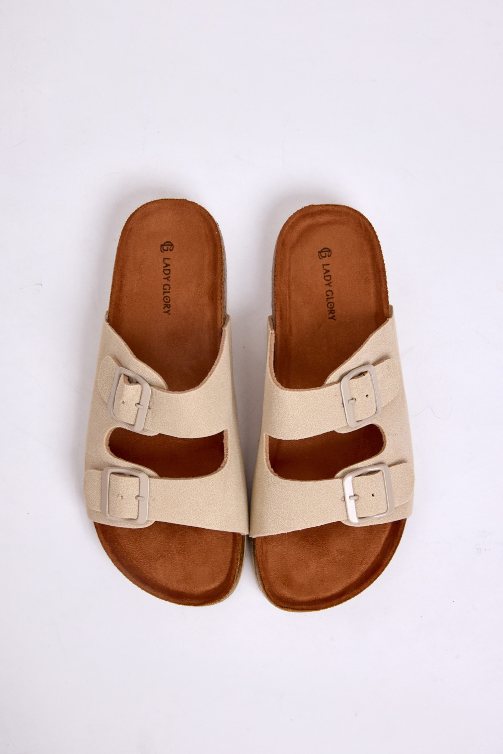 Upgrade your everyday summer footwear with these ladies’ beige double buckle comfort sliders. Designed with a soft suede-feel upper and adjustable straps, they provide a secure personalised fit for all foot shapes. The ergonomic cork-effect footbed supports the natural contour of the foot, helping reduce fatigue during long days of walking.