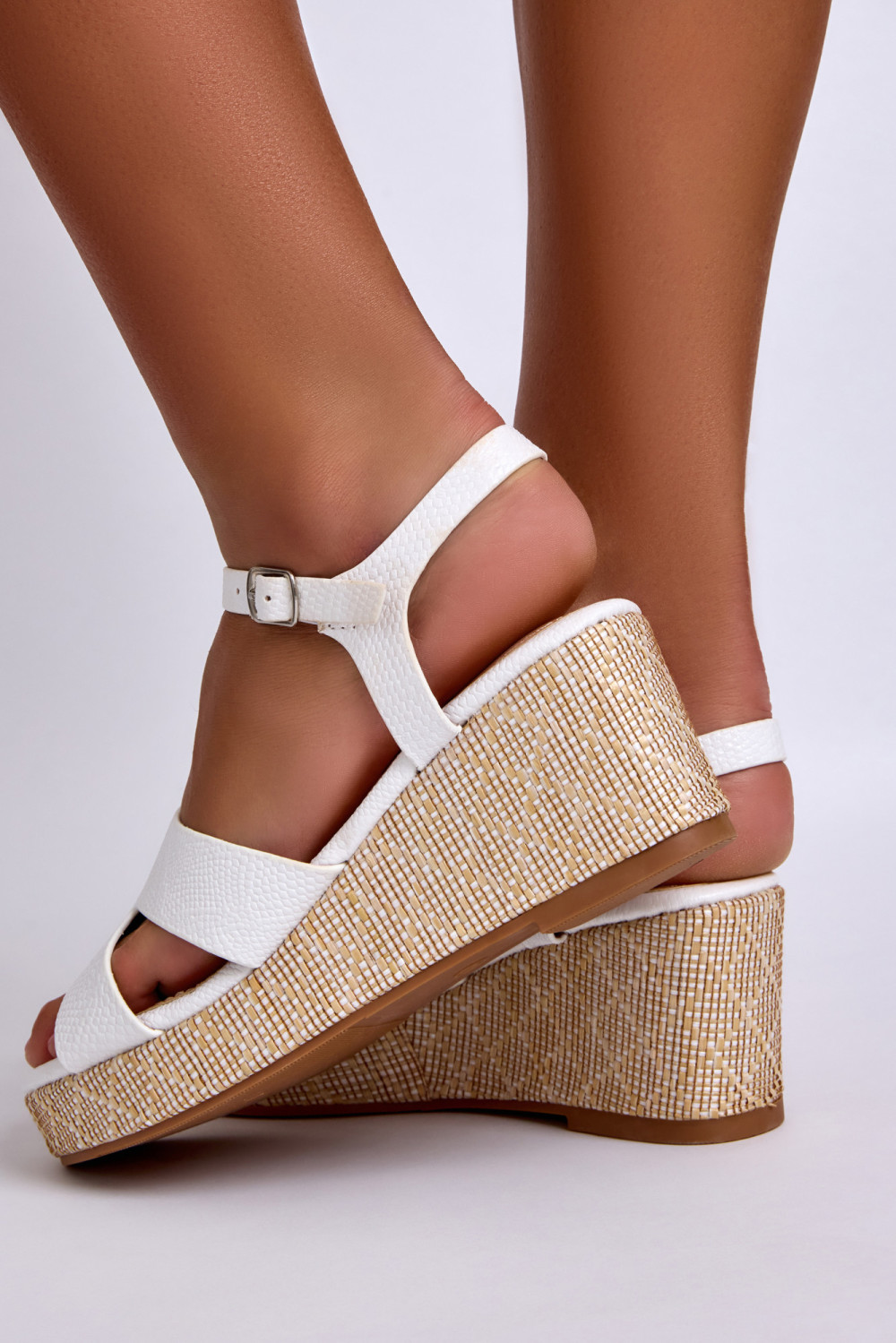 These white wedge sandals offer a clean summer look combined with everyday comfort. The crossover front straps provide supportive coverage, while the adjustable ankle strap allows a secure and personalised fit.
