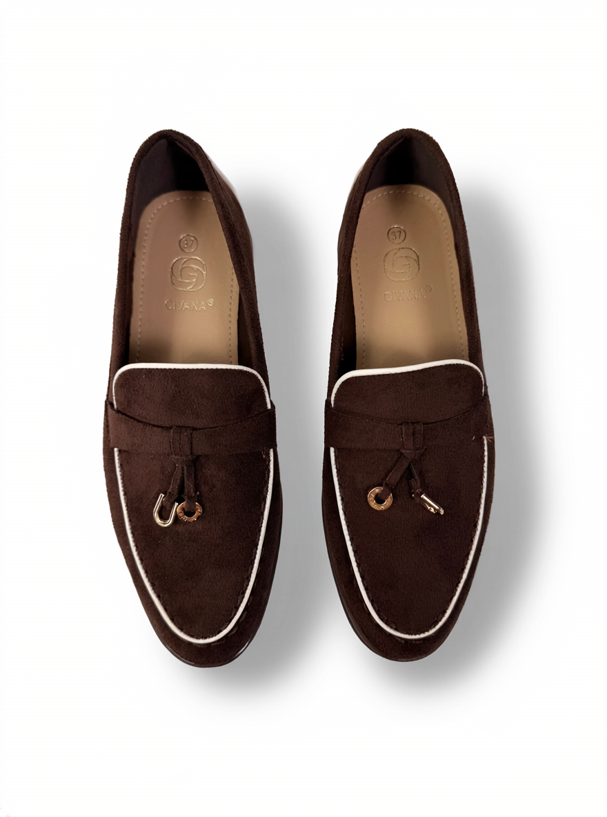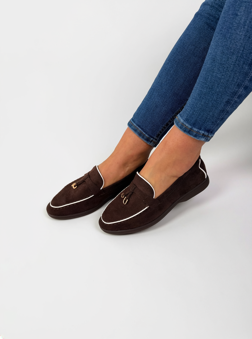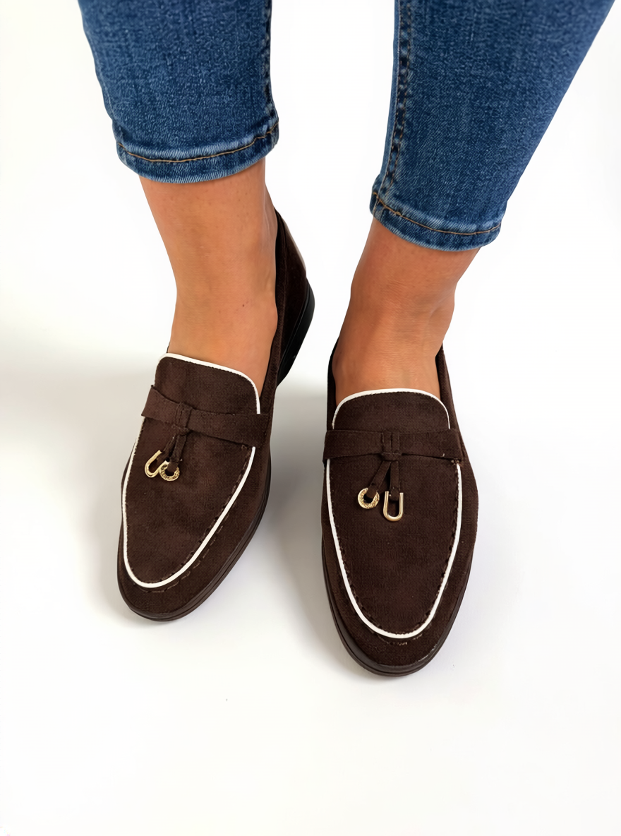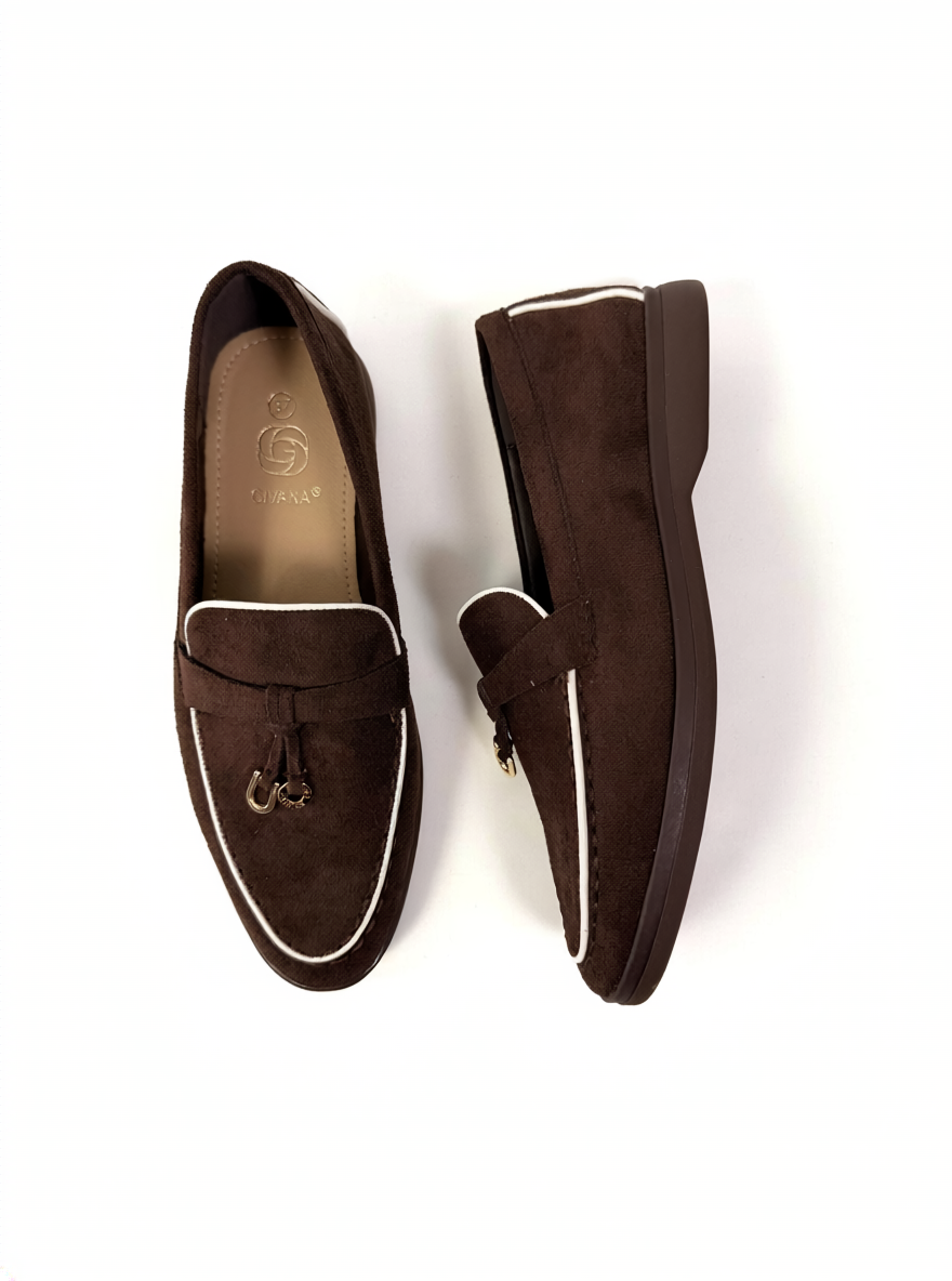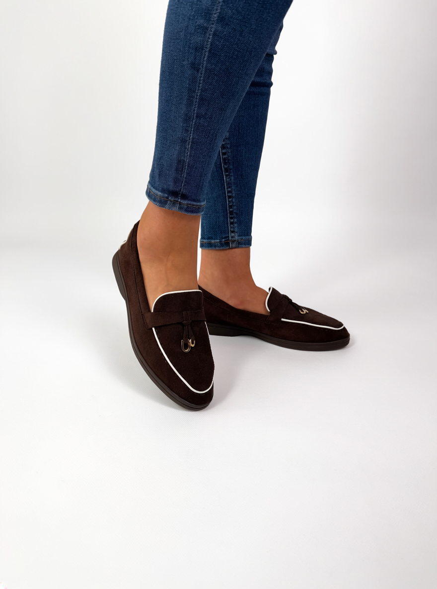 Timeless and effortlessly polished, these brown loafers are a must-have for any wardrobe. Designed with a soft suede-effect finish, they feature clean lines enhanced by subtle contrast trim, giving them a refined and modern edge.